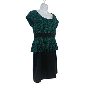 IZ Byer Emerald Green Animal Print & Black Peplum Dress Size 11