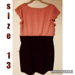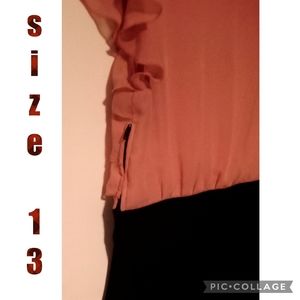 IZ Byer dress coral Peach black women's 13 Midi Ruffle Office Sleeveless Bodycon