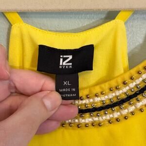 IZ Byer Tank Top XL Yellow Bohemian Chic Beaded Sheer Layered Spaghetti Pullover