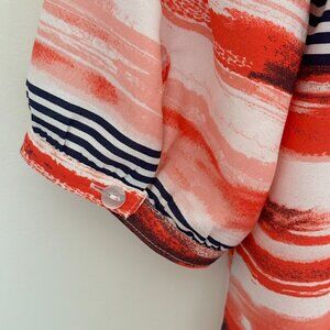 IZ Byer Top Women's Medium Coral Navy White V-Neck Back Cutout 3/4 Sleeve Sz. M