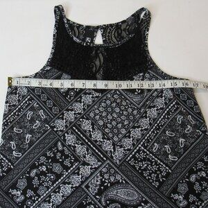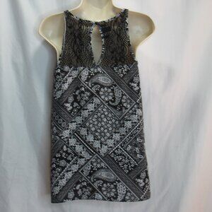 IZ Byer Women Sleeveless Top Blouse With Lace & Split Sides Keyhole Back Size S