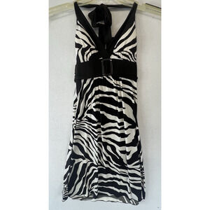 IZ Byer Y2K zebra Halter Top Dress Small Brown white buckle 2000s