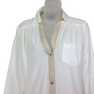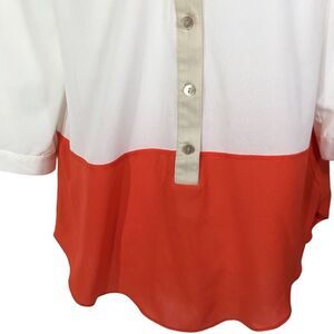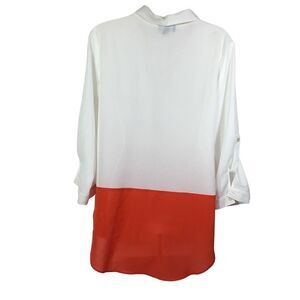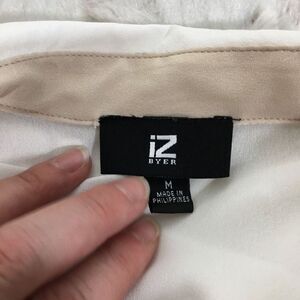 IZ Byer Women's V-Neck Collared Colorblock Semi-sheer Blouse tunic medium