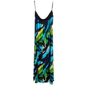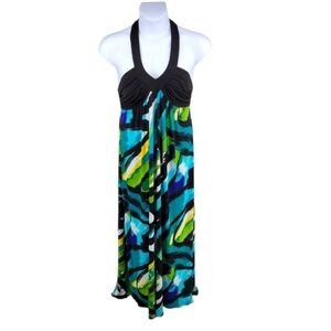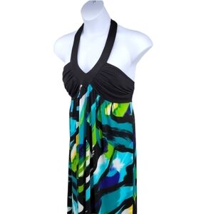 IZ Halter top; open back, Maxi Dress Vibrant and Colorful Blue and Green Size XL