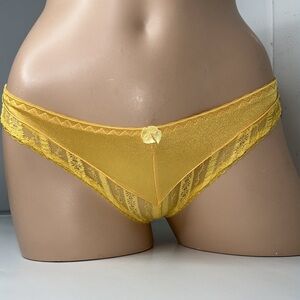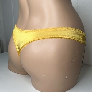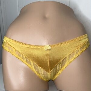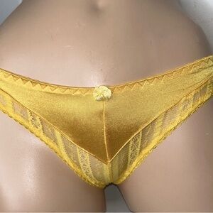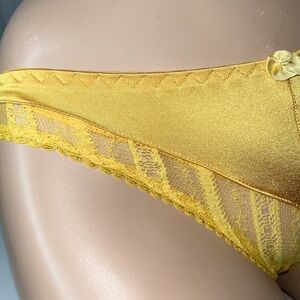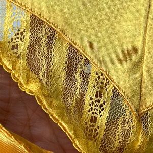IZA Silky Glossy Liquid Satin & Lace Low Rise Yellow Thong Panties Sz s NEW
