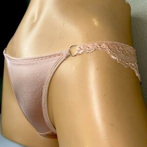 IZA Silky Liquid Satin & Lace Low Rise Bikini Cut Stretchy Smooth Panties. These are a pretty peachy pink color . Brand NEW. Love these adorable sexy panties . 76% polyamide 24% Elastane Spandex. Cotton gusset . Shiny & very smooth . Feel amazing on your skin ! Shown with a vintage Victoria’s Secret bra but listed separately. This listing is for the panties only .