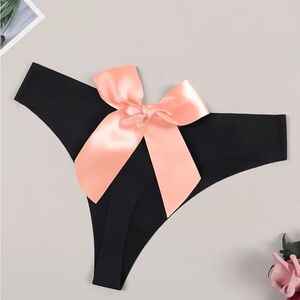 IZA Thong Second Skin Blush Peachy Pink Satin Bow Back Stretchy Smooth Black Panties NEW . LAST PAIR! These a the most amazing feeling panties ! These have a beautiful sheen .. lightly shimmering.. They look amazing on your bum ! Pictures just don’t do these justice. Well made and have a quality fabric of 88% polyamide 14% Elastane. Cotton gusset. Panties are seamless style .