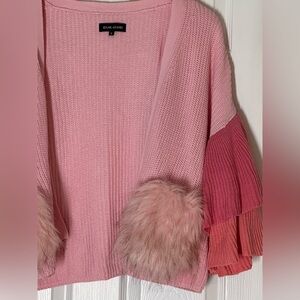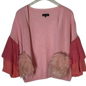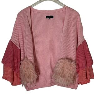 IZAAK AZANEI Open-Front Ruffle Cardigan with Faux Fur Pockets Altered?