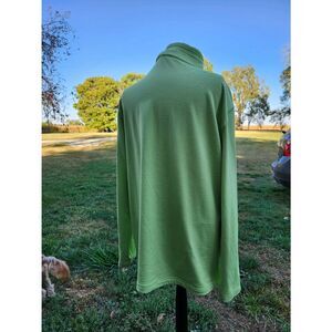 IZOD 1/4 Zip Long Sleeve Soft Pullover Shirt in Blue and Green is a perfect addition to any wardrobe. The shirt is made from polyester material and a fleece fabric type, making it comfortable and warm. It features a mock neck and a 1/4 zip for a stylish touch. The shirt is machine washable and has a regular fit, making it easy to care for and wear. Size Large