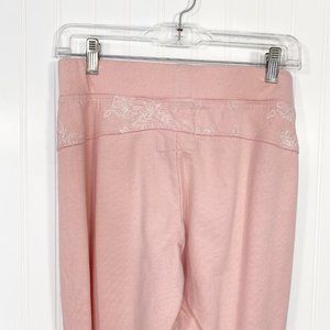 IZOD 3 Piece Jersey Knit Lounge Set includes Hoodie jacket with long sleeves and full zip front closure. A coordinated white crew neck, short sleeve t-shirt with flowers graphic on front. Full length Pants with midrise and drawstring waistband. Super cute set!