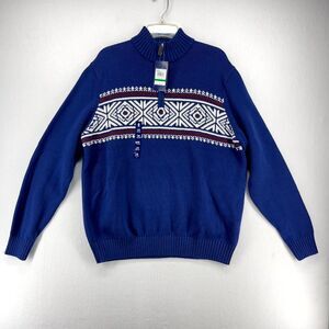 Brand new with tags IZOD 5GG Fair Isle Quarterzip Sweater Medieval Blue Color Mens Size L