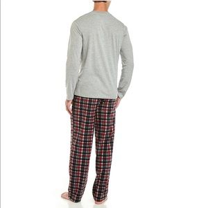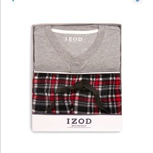 Traditional plaid-patterned pants complete this boxed sleep set from IZOD, featuring a cozy jersey Henley shirt for extra warmth while sleeping.