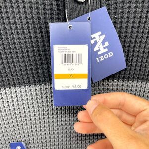 Brand new with tags IZOD 7GG Stripe Button Mock Neck Sweater Black Color Mens Size S