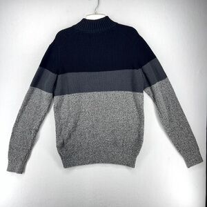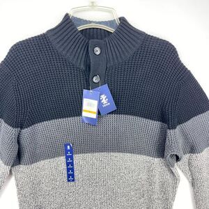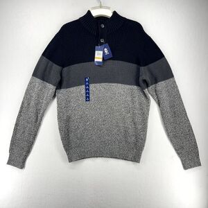 IZOD 7GG Stripe Button Mock Neck Sweater Black Color Mens Size S NEW