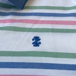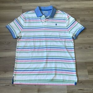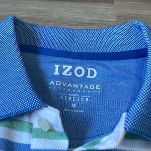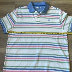 IZOD Advantage Pastel Stripe White Short Sleeve Polo Shirt Mens M Stretch NWOT