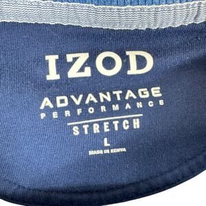 Excellent preowned condition. IZOD Advantage Performance Stretch Blue Cotton Blend Crew Neck Sweatshirt. Polyester/cotton/elastane material. Approx. measurements: Shoulder to hem 27", pit to pit 24", sleeve from neck to sleeve hem 31". Men's Size L.
