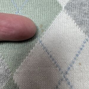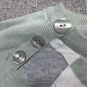 This is an IZOD sweater for women in size Medium, featuring an Argyle pattern in teal, gray, and white. Made of 100% cotton with a tight-knit construction, this pullover sweater has long sleeves and a round neckline. Suitable for casual or business occasions, it is lightweight and can be machine washed. The style is colorful, classic, and preppy, suitable for all seasons.