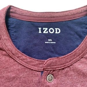 IZOD Big & Tall Men's Brushed Jersey L/S Henley Port Red Heather Sz 3XL NWT