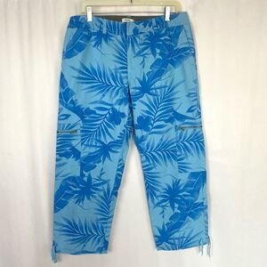 IZOD Blue Cropped Capri's Women’s Pants 12 Tropical Palm Print Y2K Vintage Retro