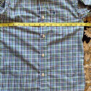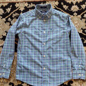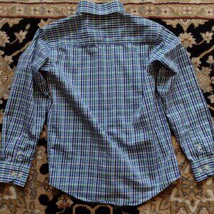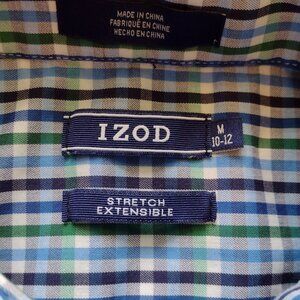 IZOD Boys size Medium 10/12 Blue White Plaid Long Sleeve Button Down Shirt, Good Condition!!