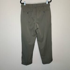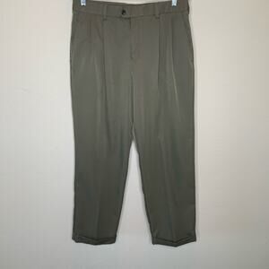 IZOD Brown Green Pleat Front Trousers Sz 32 x 30