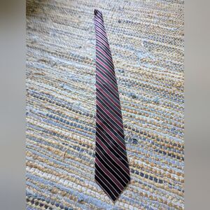 IZOD Burgundy Black & Silver Stripe Silk Tie Necktie Office Party Interview Upgr