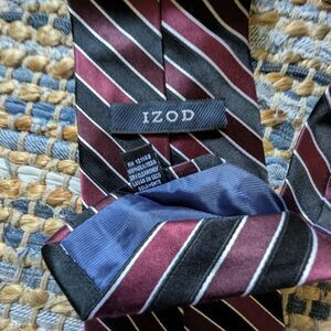 IZOD Burgundy Black & Silver Stripe Silk Tie Necktie Office Party Interview Upgrade