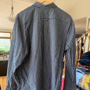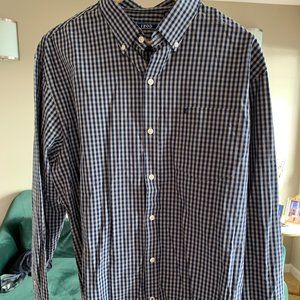 IZOD Navy Blue Gingham Plaid Button Down Shirt