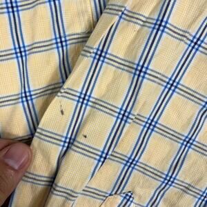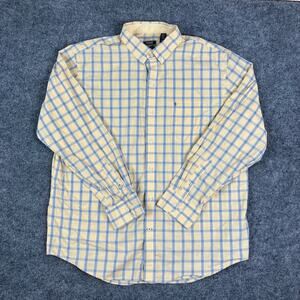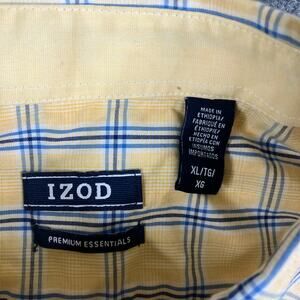 IZOD Button Down Shirt Mens Size XL Yellow Blue Plaid Long Sleeve Casual Cotton