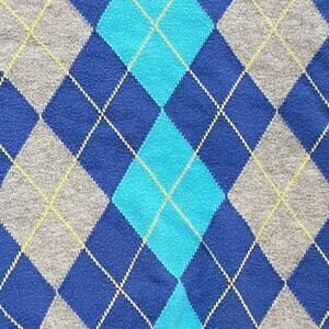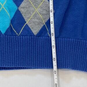IZOD Cotton Argyle Long Sleeve V-Neck Pullover Sweater in a Bright Blue & Gray Print, Size XL