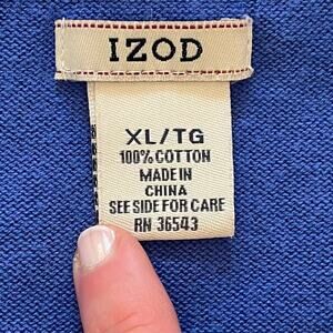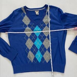 IZOD Cotton Argyle Long Sleeve V-Neck Sweater, Blue, Gray, Y2K, Retro, Preppy XL