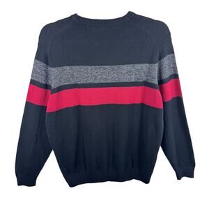 IZOD Cotton Blend Black Red Gray Striped Long Sleeve Pullover Sweater Men's XL