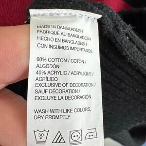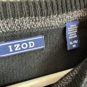 Excellent preowned condition. IZOD Black, Red, & Gray Striped Long Sleeve Pullover Sweater. Cotton/acrylic material. Approx. measurements: Shoulder to hem 30", pit to pit 27", sleeve from neck to sleeve hem 34". Men's Size XL.