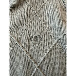 IZOD Cotton Sweater Mens Medium Crew Neck Pintucked Diamond Knit Neutral Tone 90s