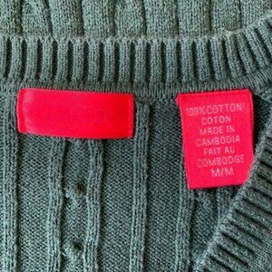 IZOD Cotton Cable-Knit Green Sweater Size M