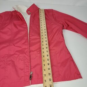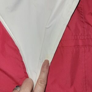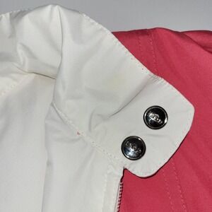 IZOD Fall Spring Rain Jacket Reversible Removable Sleeves Pink White Pockets
