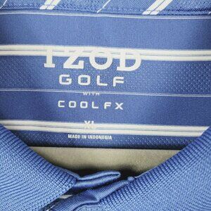 IZOD Golf Cool FX Men's Polo Shirt Blue Striped XL Moisture Wicking Casual EUC