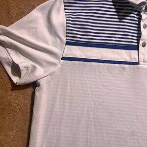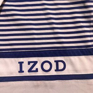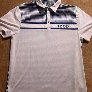 IZOD Golf Men Large White Blue Striped Performance Short Sleeve Golf Polo (W)