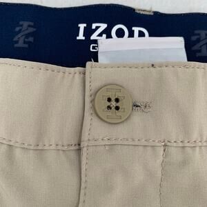 IZOD Golf Mens 38x32 Pants Khaki Beige Logo Lightweight Comfy Stretch Straight