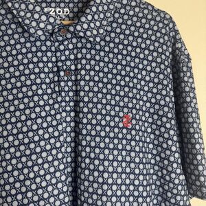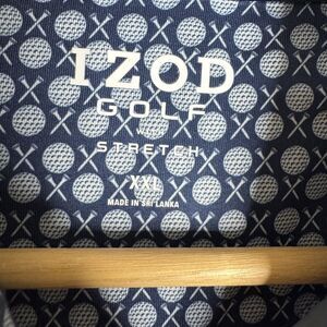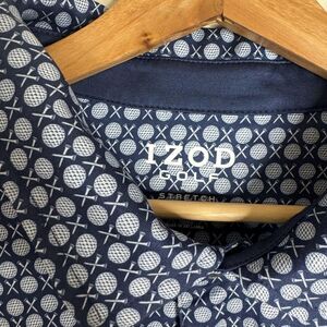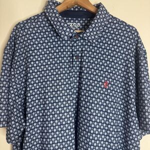IZOD Golf Polo Shirt Mens 2XL Blue Stretch Performance Golf Ball Print Allover