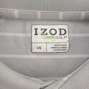IZOD Golf Shirt Mens Large Gray Green Polo Outdoors Casual Logo Collared Striped