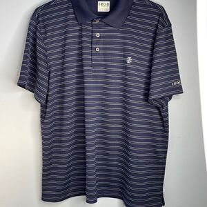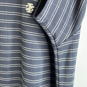Great golf shirt! Blue with grey pinstripes. Size Lg. Polyester.