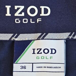 IZOD Golf, SwingFlex, golf shorts, cargo shorts, mens 36, 36W, 8 inseam, navy, performance, stretch, stretch waistband, UV 40, UV protection, polyester elastane, athletic, outdoor, hiking, casual, flat front, pockets, summer