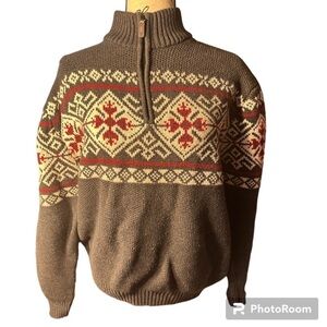 IZOD 2XL warm, heavy, sweater. Gray, Red, Cream. 1/4 Zip. Some light pilling from wear.