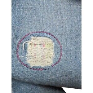IZOD Jeans WOMEN 16 Blue Stretch Wide Leg PINK PATCHES Classic Ladies Vintage