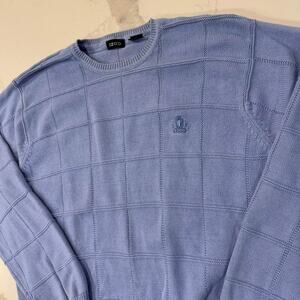 IZOD Knit Checkered Pullover Long Sleeve Crewneck Sweater Blue Men's XXL Cotton