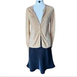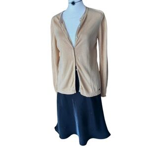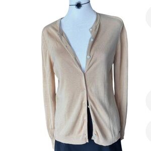 IZOD Ladies Silk Blend Cardigan Small Beige Lightweight Button-Down