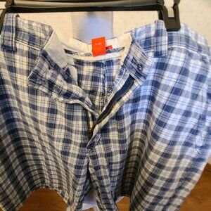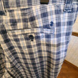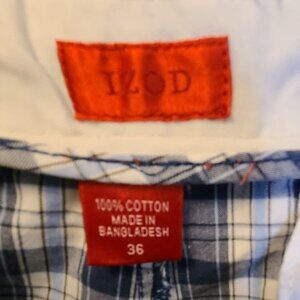 IZOD MEN'S CLASSIC COMFORT FIT- FLAT FRONT- BLUE /WHITE PLAID SHORTS- SIZE 36