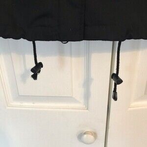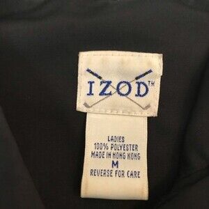 Size medium lightweight Izod golf jacket black. Zip up with snap closures. Pockets and adjustable snaps at wrists. Adjustable pull at waist.