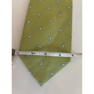 IZOD Men's 100% Silk Neck Tie Line Green w Blue Small Paisley Print JL